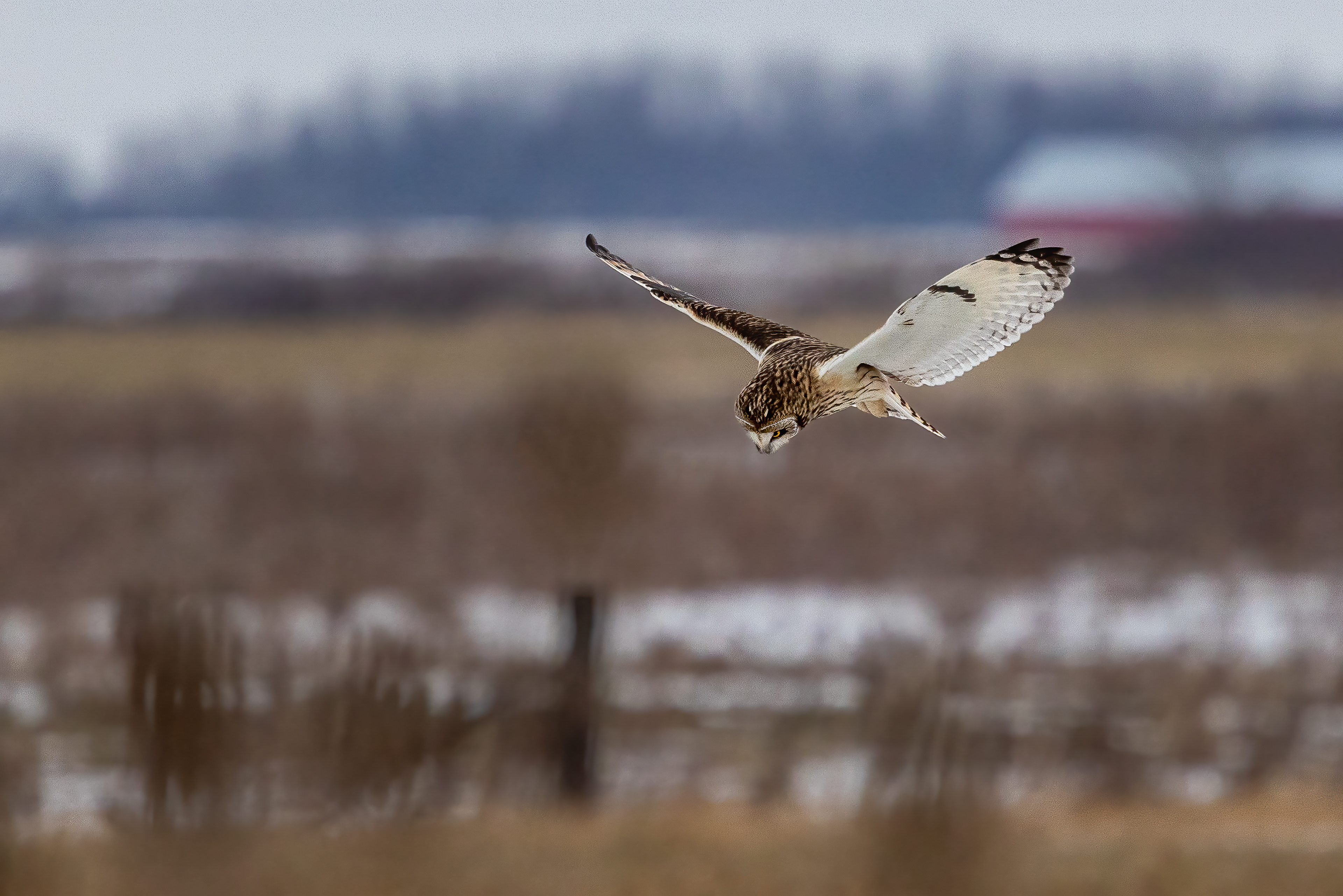 The next big encounter came on a cloudy, overcast day. I was tired of driving and decided to sit and drink my coffee on a side road. While I was relaxing, several owls popped up out of the grass and began to hunt. I couldn’t believe my luck—sitting alone on a side road with several Shorties putting on a show. I captured several photos that day, some of which are below.